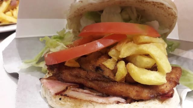 Pane artigianale, filetto di pollo croccante, lattuga, pomodoro, maionese