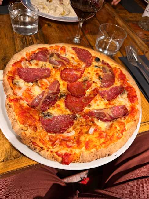 7/10Service was ok, but not exceptional. We were not amazed by the food: pizzas or pastas. The pizza dough was almost like the ones you buy from the supermarket and spicy pepperoni was far from spicy. Pasta sauces were a bit meh, and for example the minced meat was so fine, that the structure reminded us of baby food. All in all an ok experience, could go again for a drink 🍷