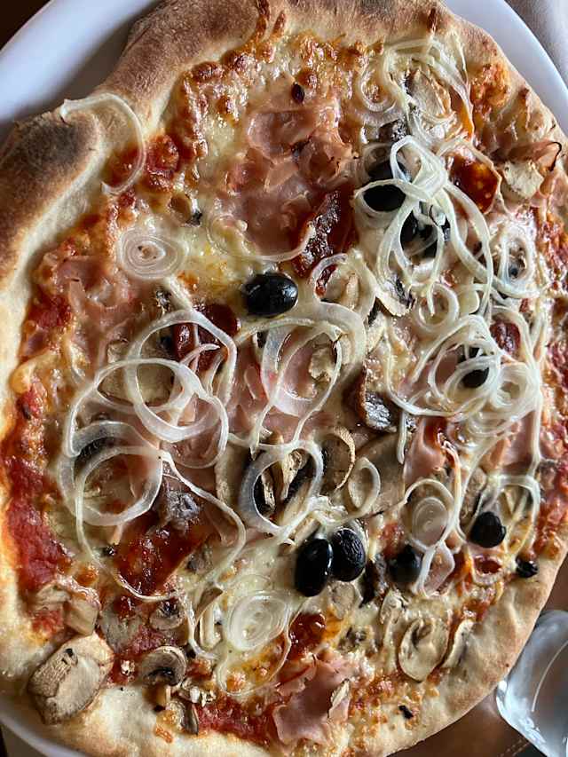 - Escalope de veau panée, tomate crème, champignons, jambon, scamorza, mozzarella, gratinée
