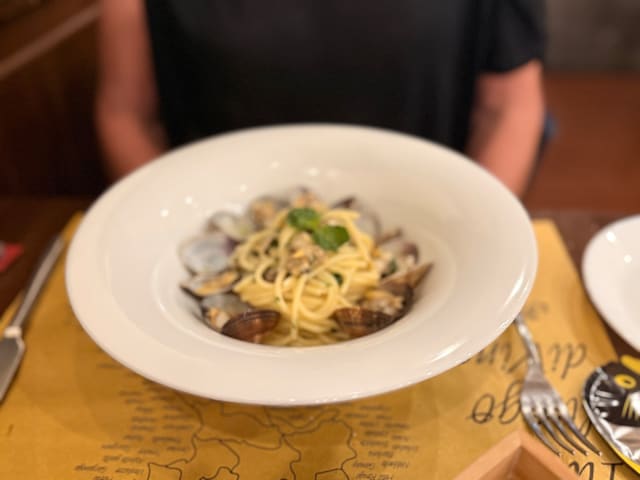 10/10Perfect casual Trattoria with AC after a hot day in chique Milan. The best test of a chef is how he or she makes the simple things. The Ali Olio Picante was simple and delicious. As were the Polpette di Melanzane. The Vongole was delicious and the Veal Milanese with French Fries was a the perfect secondi . The house wine, a Nero d’Avola was a perfect pairing to a reasonable and delicious dinner. Grazie mille