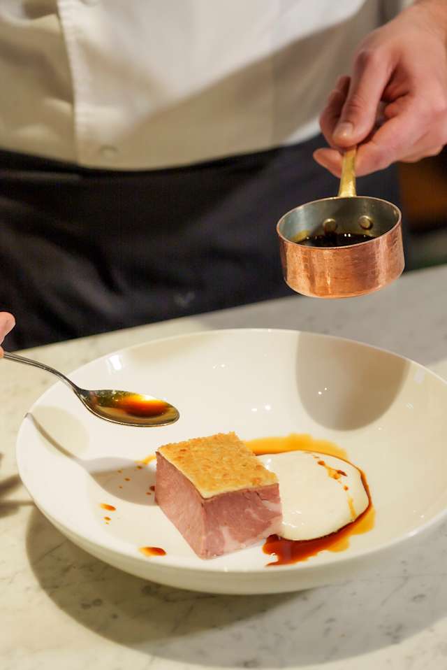 - Ravioli ripieni di coda di manzo, composta di sedano, emulsione al rafano