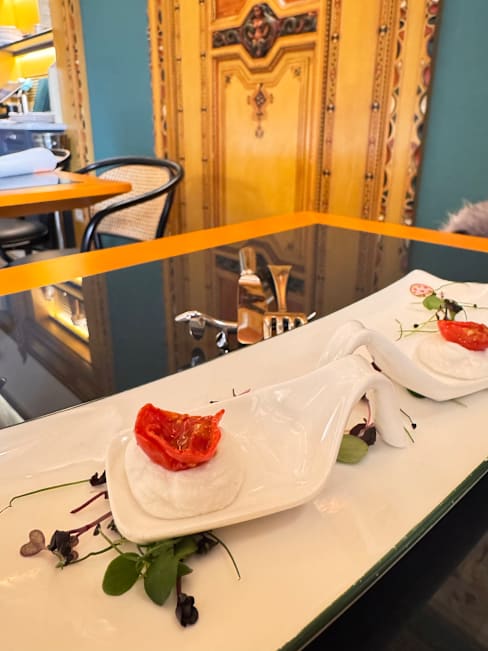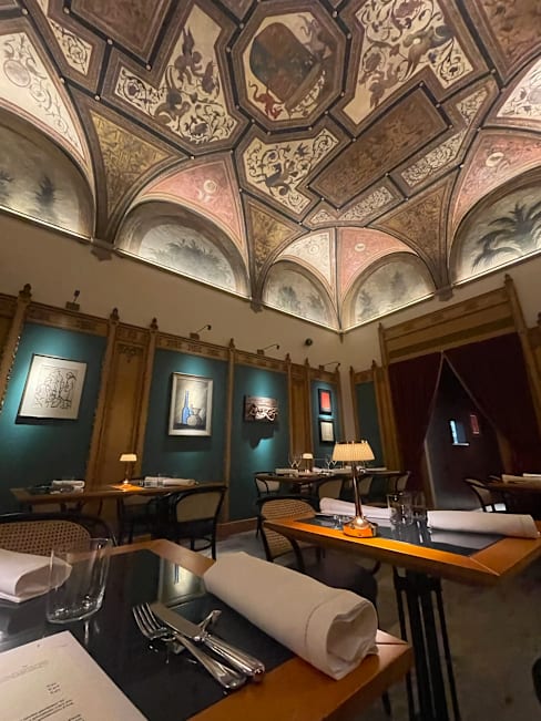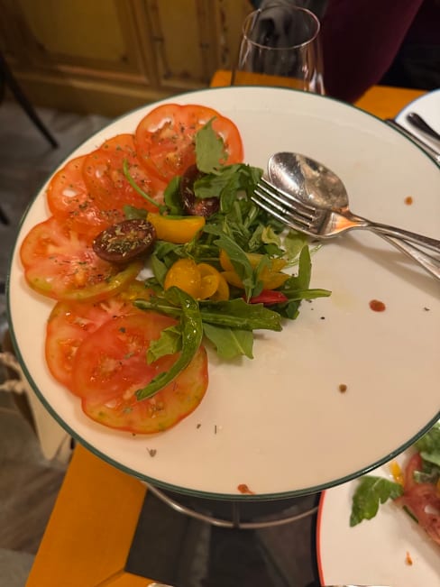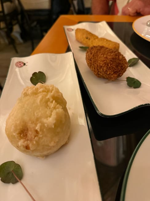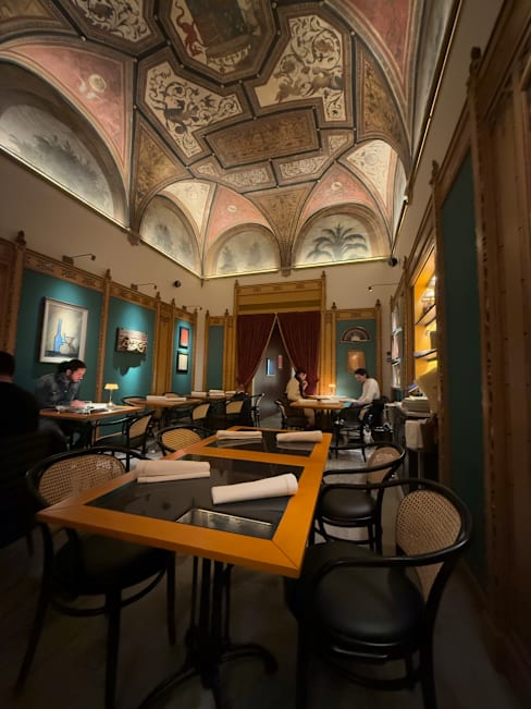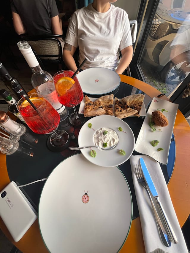 10/10Tucked away in the back streets of Rome, this from the outside unassuming looking restaurant is a different world inside. Staff attentive, polite, and clearly wanting you to have a good gastronomic experience. Some of the dishes are Michelin star level, but you can also order classics such as pasta and pizza which is what we went for. A simple delicious rocket and tomato salad was a shared starter. I don't eat tomatoes but I tried some and they were lovely. A simple Margherita pizza for main which again was delicious. And the star of the show for me was the bounty dessert. I would go back again to try this. Oh and a beautiful Mango, lime and alcohol free ginger beer cocktail which was sublime.