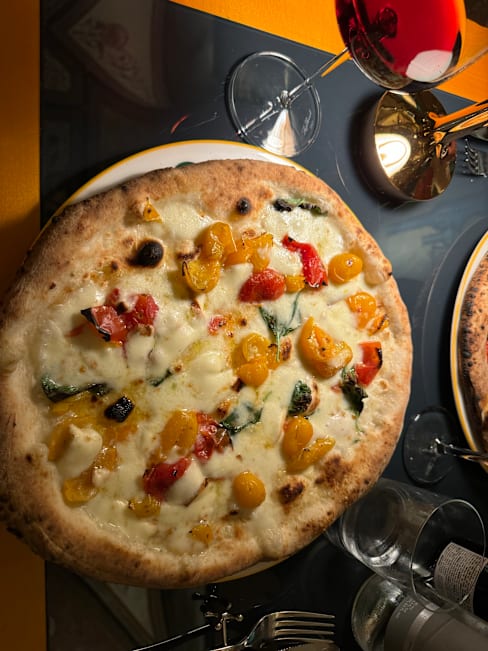 10/10Truly amazing — beautiful wine collection with expertise knowledge. amazing staff that quickly put 2-frazzled parents traversing Rome with a toddler too ease with a special quick pizza (thus allowing parents to enjoy their dinner). Gorgeous restaurant— locals with tourists. And then, the pizza —wow: the cheese, bread: wife had a beautiful Margherita with so much flavor!! I wanted something bold—Ansjovis perfect!! But— the small fried Mediterranean was an uninspected surprise. The deserts were pretty great- limoncello-sponge cake and the Bellini mouse (and pastry chef reviewed with us). We will be back!!