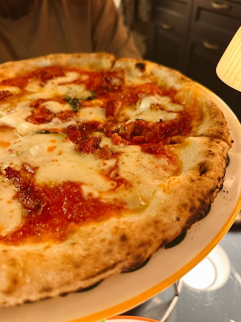 10/10Best pizza we had in Italy, amazing service and atmosphere 10/10 Bit pricey but definitely worth it