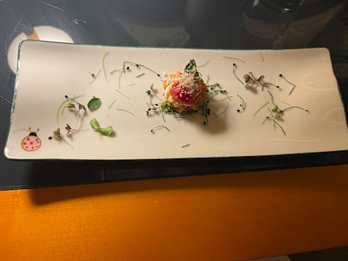 10/10Tucked away in the back streets of Rome, this from the outside unassuming looking restaurant is a different world inside. Staff attentive, polite, and clearly wanting you to have a good gastronomic experience. Some of the dishes are Michelin star level, but you can also order classics such as pasta and pizza which is what we went for. A simple delicious rocket and tomato salad was a shared starter. I don't eat tomatoes but I tried some and they were lovely. A simple Margherita pizza for main which again was delicious. And the star of the show for me was the bounty dessert. I would go back again to try this. Oh and a beautiful Mango, lime and alcohol free ginger beer cocktail which was sublime.