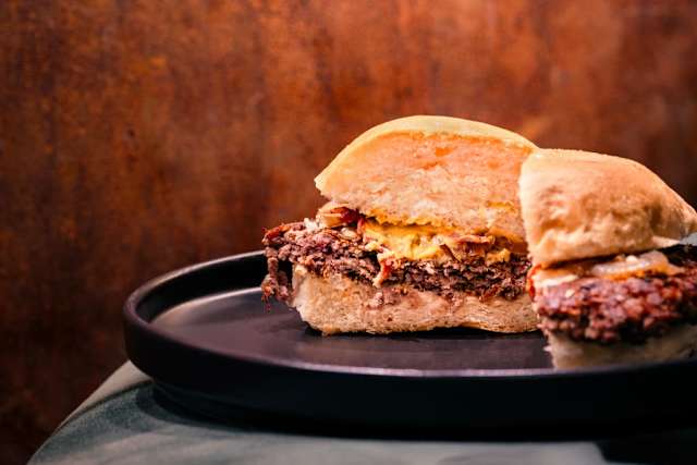 - Bun, doppio patty smashed 80gr, doppio cheddar, cipolla, bacon croccante, salsa victorian