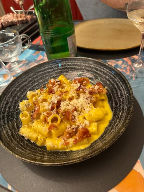 9.5/10W what a really really nice place this is my first dinner in Rome and my first visit to Rome and I am so glad I picked this place for my first experience. Both the beef ribs and the steak were EXCELLENT- the carbonara could’ve used the little salt but other than that an all-around pretty excellent meal
