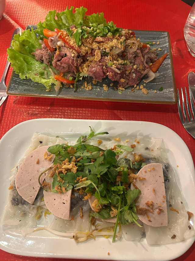 - Vermicelles, bœuf citronnelle, nems au poulet, crudités