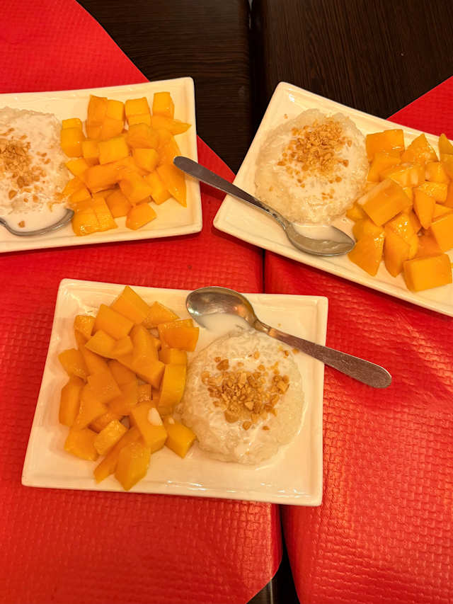 - Salade de mangue verte, crevettes et poulet, herbes parfumées, crudités