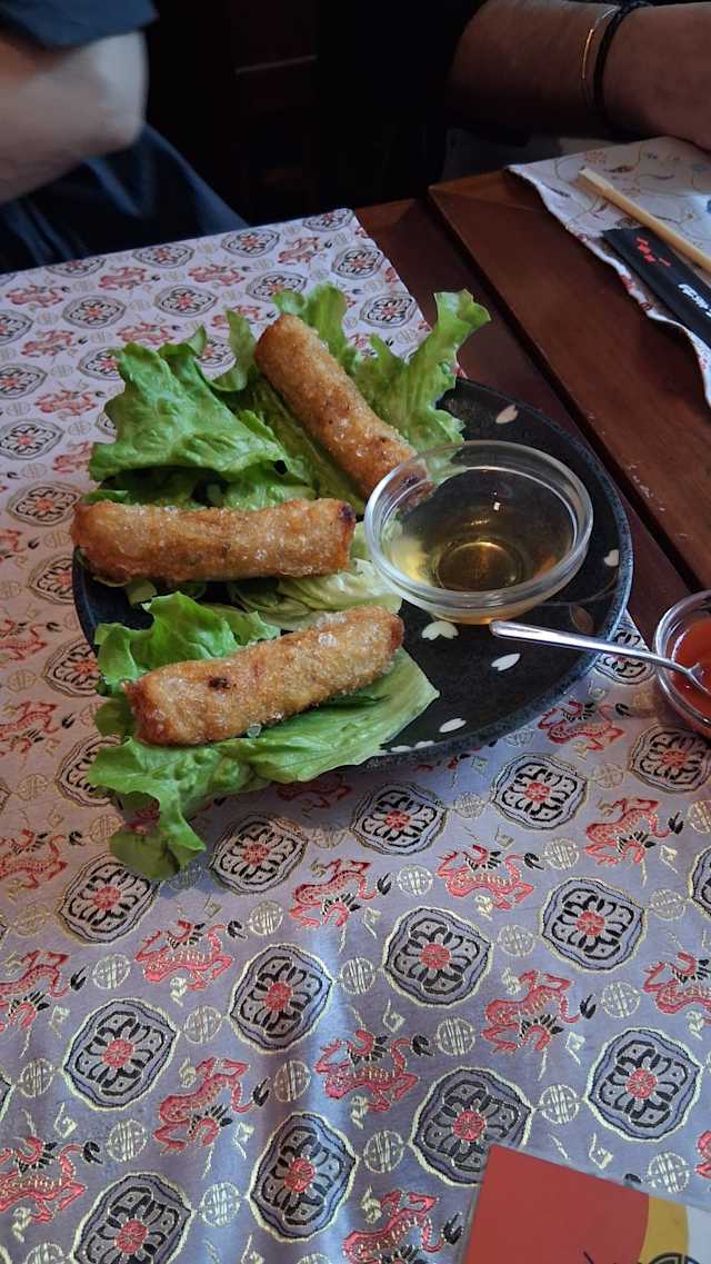 - 1 nem carne (croccante) , 1 involtino al vapore bao con carne e glutine , 1 goi cuon gamberi (temperatura ambiente)