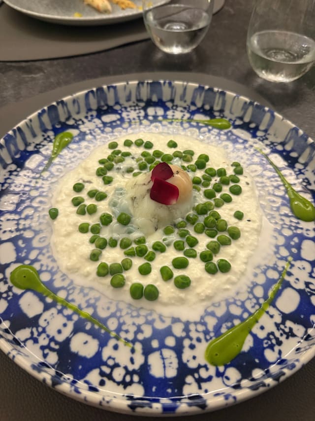 Tartare di pisellini verdi, fonduta di stracciatella di puglia