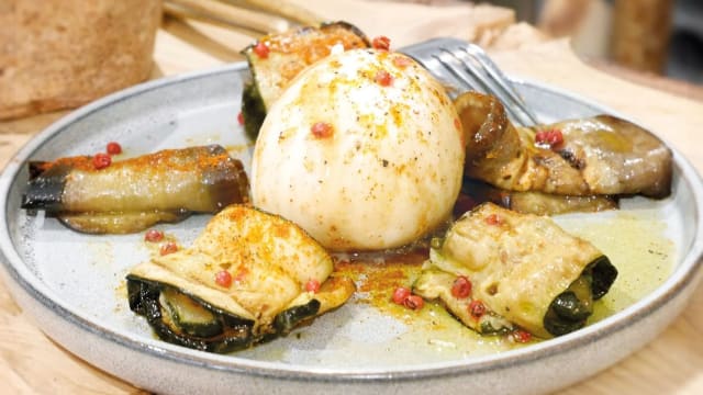 Courgettes et aubergines grillées, tomates cerise, mozzarella, jambon cru ou