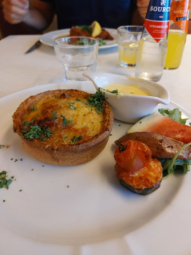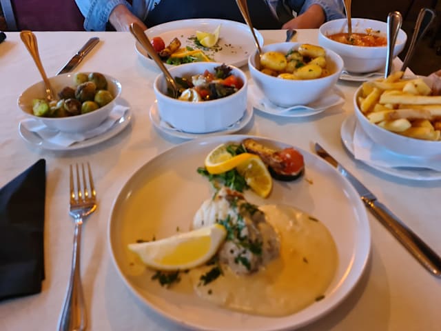 7.5/10The setting is beautiful. The restaurant is nice and clean. The food is on the average side, but nice and tasty, with a good service, nice bread and butter with herbs. On the down side, in summer, even with such nice weather, they close the kitchen at 21.