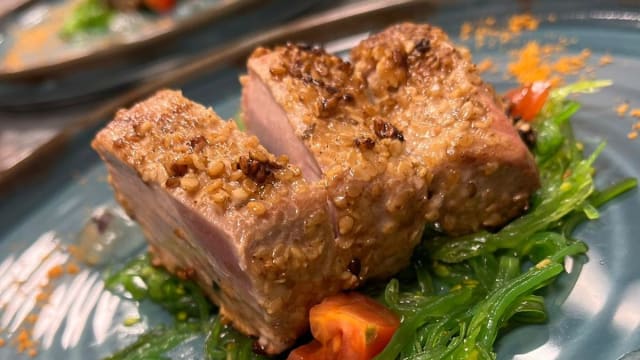 Tataki di tonno, chutney di cipolla rossa e salsa teriaky