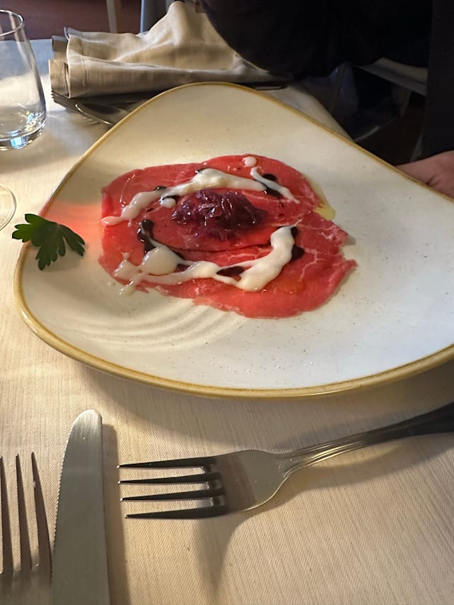 7.5/10Located inside an old well-kept aristocratic building. Pasta from the oven was dry and tasteless. The main dish with beef was a lot better. The dessert of creme brulée was fine. Service was ok. We paid including mineral water and coffee 80 EUR.