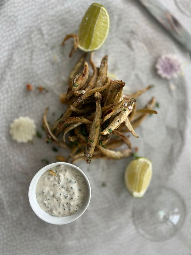 Façon meunière, beurre monté au citron / Façon tempura, beurre monté au citron, sel fumé et citron noir - Ce plat est accompagné de frites fraîches et salade de Filly