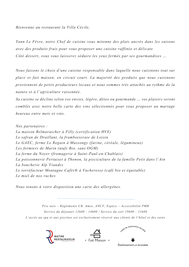 Yes, Villa Cecile is offering 20% off the 'a la carte' menu Reserve your table and enjoy your special discount now on TheFork!