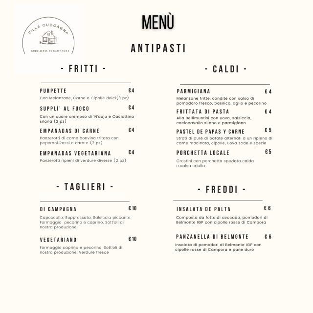 Villa Cuccagna: Osteria di Campagna is identified as offering seafood cuisine.