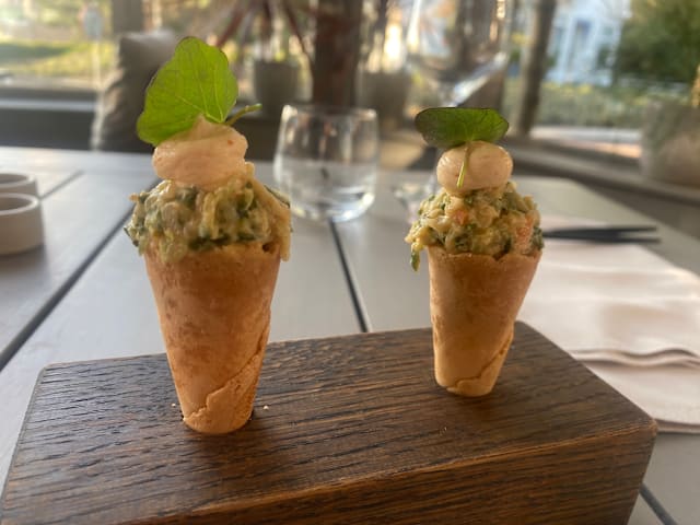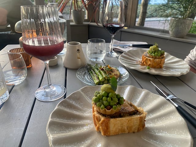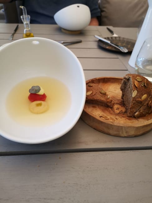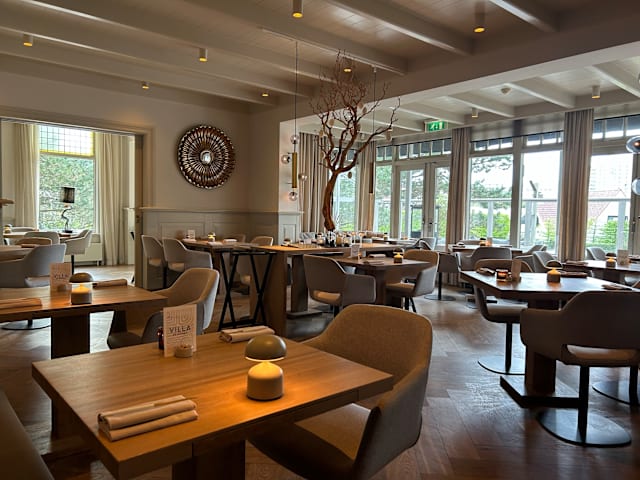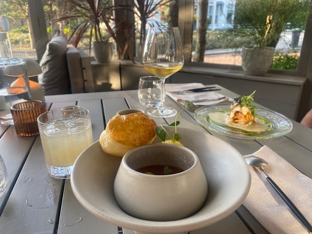 9.5/10We visited the restaurant the first time. It is part of boutique hotel Villa de Duinen and offers seating on a covered terrasse or inside (due to the good weather, we were placed outside). It was not very busy, probably due to it being a Monday. The menu card is let's say limited. There was a choice of 4 or 5 course menus wither with or without in-between courses and a variety of accompanying drinks options (wine, water, coffee). Food was creative, well presented, tasty and unpretentious. It's worth mentioning that the drinks recommendations (we decided against accompanying drinks) was excellent, being it wine, dessert wine or beers. One of the best I'd had in my years of fine dining. The only improvement would be reducing the overly long periods between courses. I would've wished this to be quicker, 3 hours for 4 courses was a bit too long. Still a clear recommendation for a tasty evening with friends or a special one.