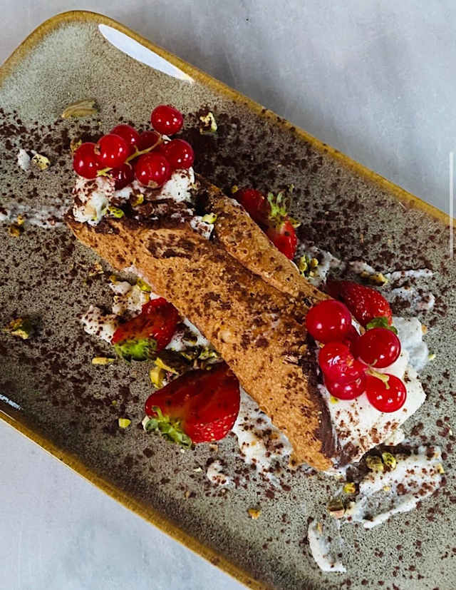 - Millefoglie con crema pasticcera e salsa ai frutti di bosco