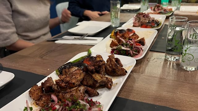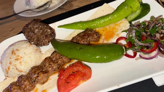Een combinatie van gegrilde vleessoorten, waaronder tavuk şiş, kusbaşı, adana en sebzeli kebap