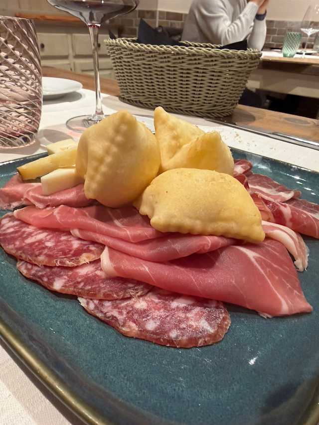 Fiocco di Parma del prosciuttificio “San Nicola”, bruschetta di pane, stracciatella, pomodori semi secchi e olive taggiasche