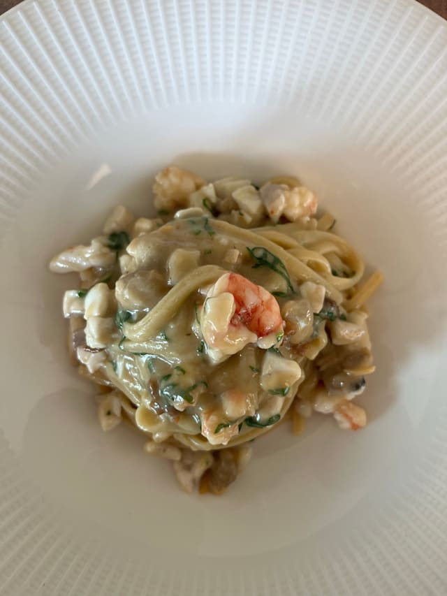 7.5/10We booked far in advance because we heard by word of mouth that it was a place worth trying. The service was a mess, orders forgotten - appetizers and main courses coming at random times .. it took forever. We wanted to order dessert but opted to go somewhere else .. it was just no longer bearable. The staff seems nice, but just terribly unorganized. The food was lovely, the vongole a bit mediocre.