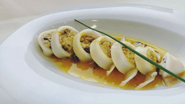 Burger al nero di seppia con polpo burrata e rossa di tropea marinata