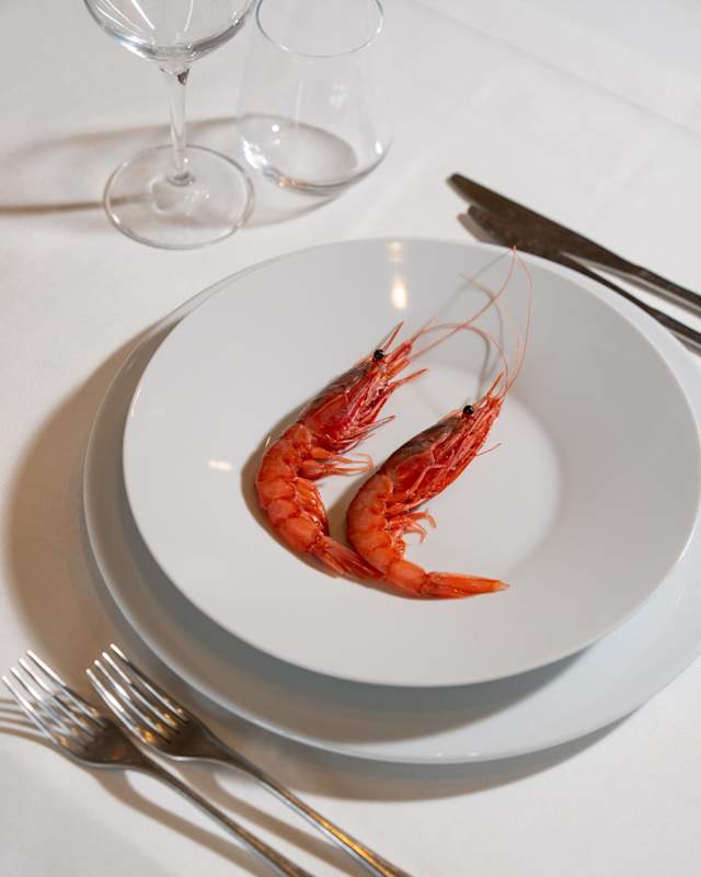 - Risotto in bianco, coulis di crostacei, frutti di mare, gamberi e seppia