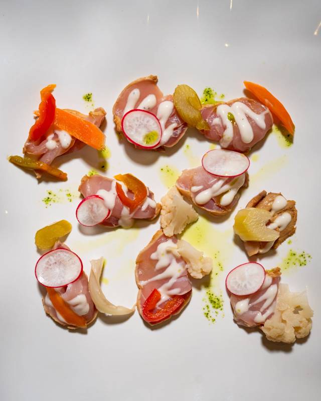- Tataki di ricciola, verdure in giardiniera, salsa agrodolce