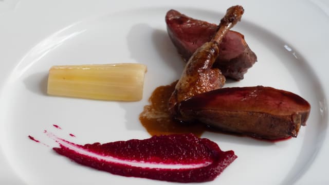 Starna emiliano-romagnola “az. agricola pelloni” cotta alla brace, servita con bietoline e verdure di stagione