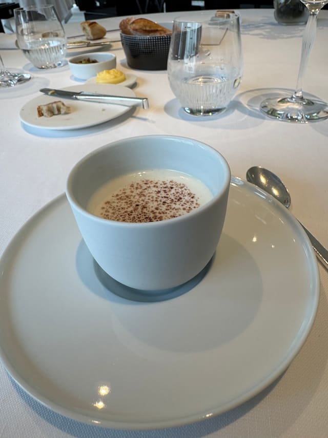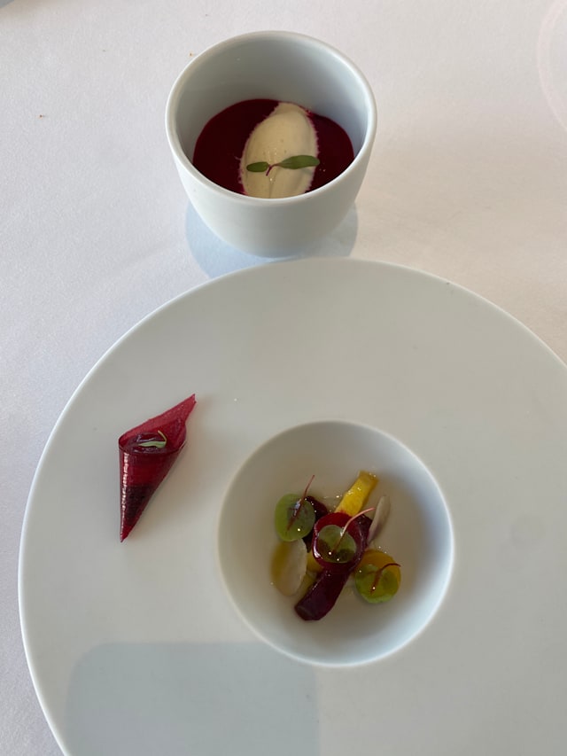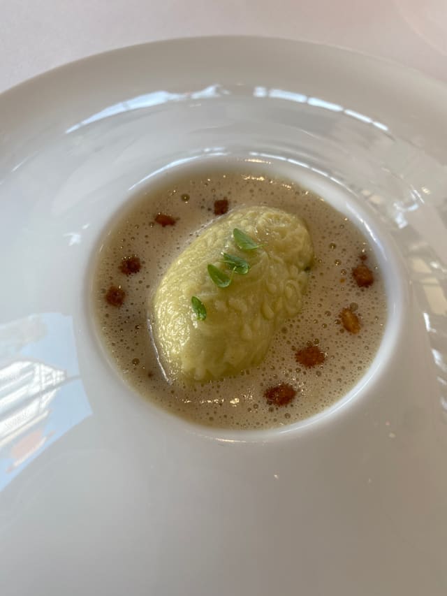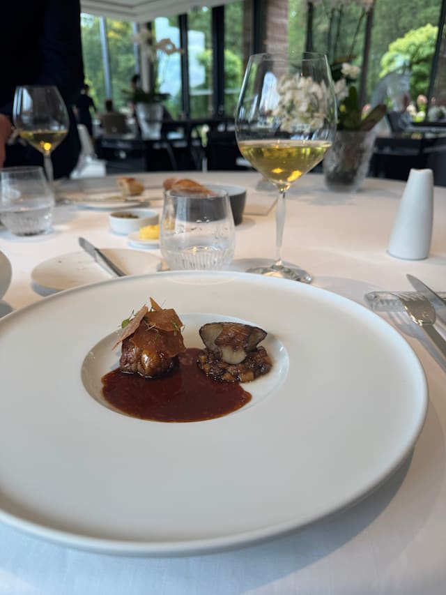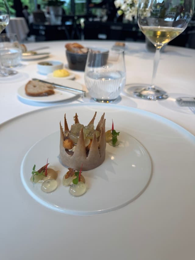 9/10Beautiful restaurant, breathtaking view and surroundings, the Lalique magic. We took a menu "Valse", and that was spectacularly served. As far as the cuisine is concerned, very elegant and modern, excellent arctic char, excellent foie gras served in a cocoa butter casing, excellent desserts. Many different small tastings get onto your plate, to open your taste buds. However, too much "espuma", diced citrus -which I love- hides on some occasions the very subtle other tastes, and there is not enough juicy final "deglacage" or *jus de cuisson" that gives the wonderful finish of a dish. As an example, the "paleron " may better served with just its own juice. Very good wines, you can go by the glass. To recommend for a wonderful memory of sitting in a jewelry box!