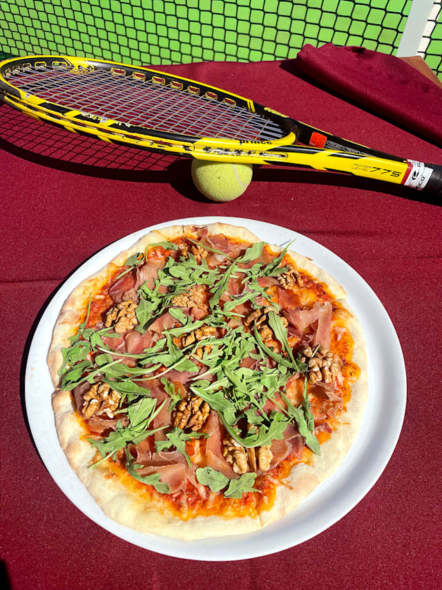 Tomate, presunto, rúcula, queijo, nozes