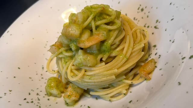 Spaghettoni con tartare di gambero rosso di sicilia e lime