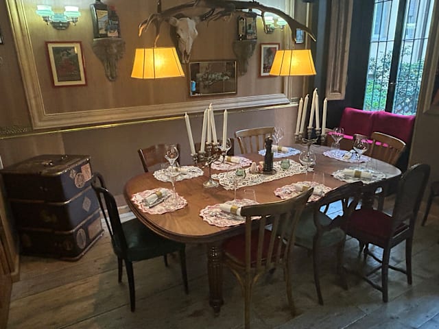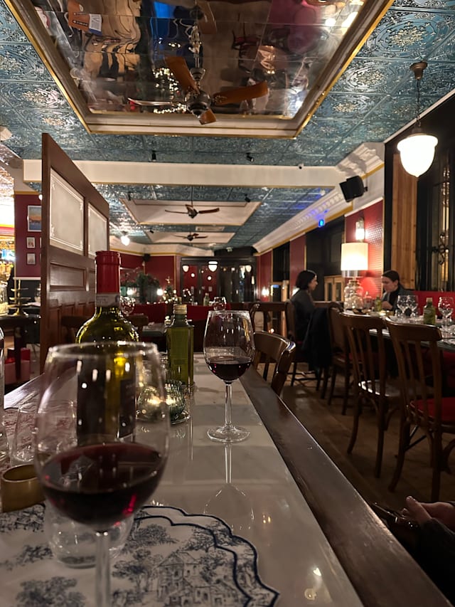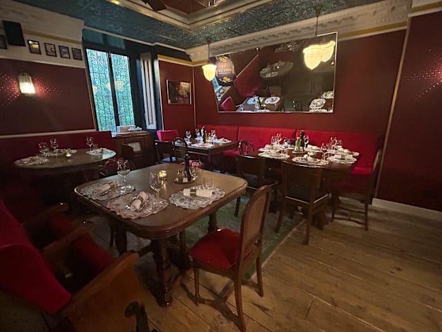 8/10The first thing to strike me was the numulti-levelled space dividing the entrance, bar and restaurant areas. The next was with original furniture and decor giving off a barber shop/ theatre/ country house feel. The staff was courteous, relaxed/ no stress approach (perfect for an end of the working week unwind dinner). The service was relatively fast without rushing us. The food we chose was tasty, despite both the cold slices plate and steak being a little colder than expected (though succulent). We were happy with the zucchini flowers stuffed with warm cheese and escargots (nicely seasoned with herbs). We did not sample the desserts. The wine list was rich with well selected choices. I later noticed also some pleasant background music playing (was not too loud). The only slight disappointment was that we picked out this restaurant for its “French Cuisine” but found only a relatively small part of the menu to reflect this.