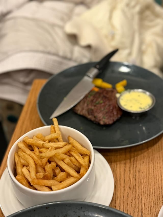 9.5/10Seated immediately, amuse bouche and glass of chilled bubbly arrived before I ordered anything. Really enjoyed half dozen oysters on the shell followed by an enormous pot of moules - et frites. I was too full having scoffed the lot to order the soufflé Grand Marnier. It filled up quickly. Service was prompt and friendly. A great start to my stay in France.