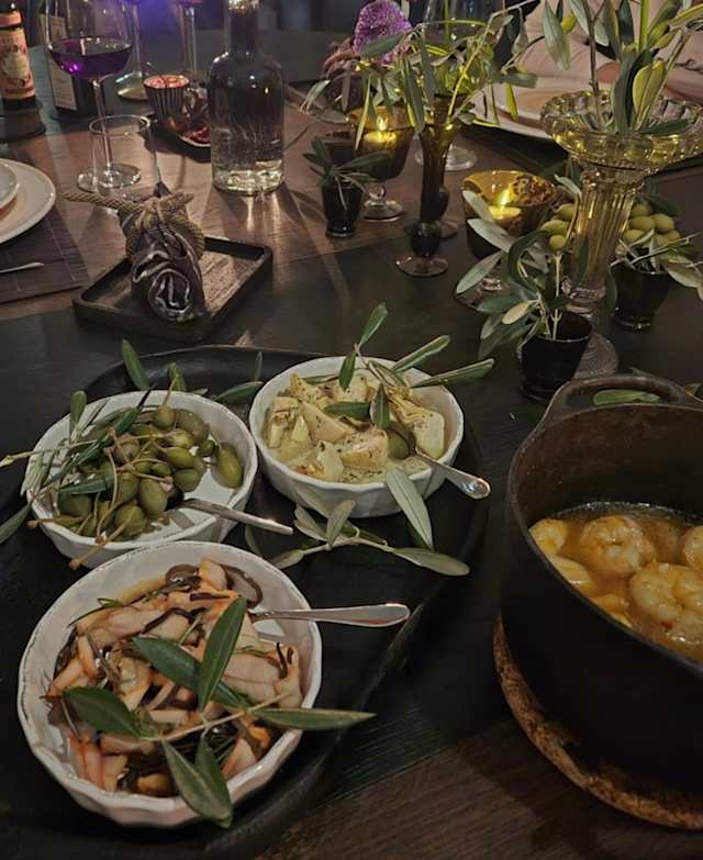 - Vi serverar satta menyer som är säsongsanpassade. Vi börjar med tilltugg och snacks som sedan övergår till lite större kalla och varma serveringar som avslutas med något sött. Vi börjar kl 18.00 och avslutar kl 22.00. i menyn ingår vinpaket som matchar maten och som vi hämtar från vår generösa vinkällare. Vi tar max 8 personer per tillfälle.