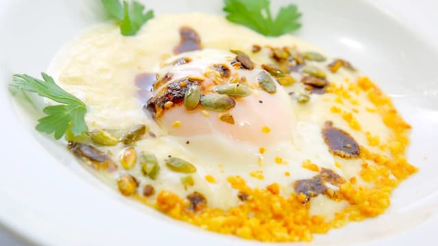 9.5/10Stunning food and lovely restaurant with attractive indoor decor and a green and shady outdoor section. Each of my 6 courses was close to perfect. I opted for the surprise menu. The food was not overly showy or complex but demonstrated great mastery of the art of layering flavours. I made sure to try a little of all the flavours on each dish at once. Each ingredient sung out in it's own turn in a fabulous sequence of flavours. Favourite courses were aubergine roll with pimento and sheeps cheese and the sturgeon with fish roe, piccilo peppers and meat jus. I went during an extremely quiet lunch service on Saturday, service was professional, polite and engaging throughout. Price came to 100€ which , given I had 4 glasses of wine , represents great value.