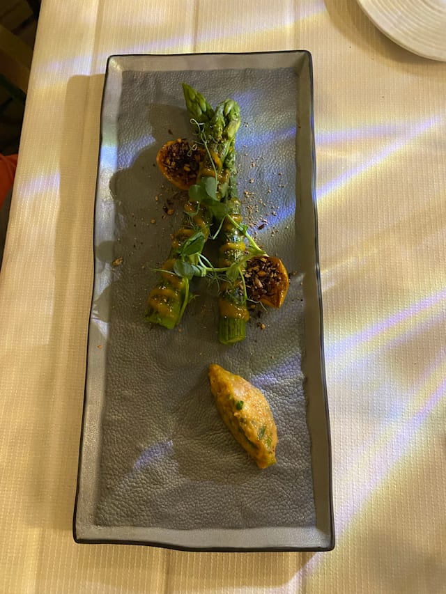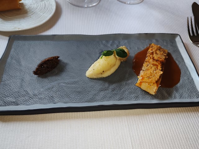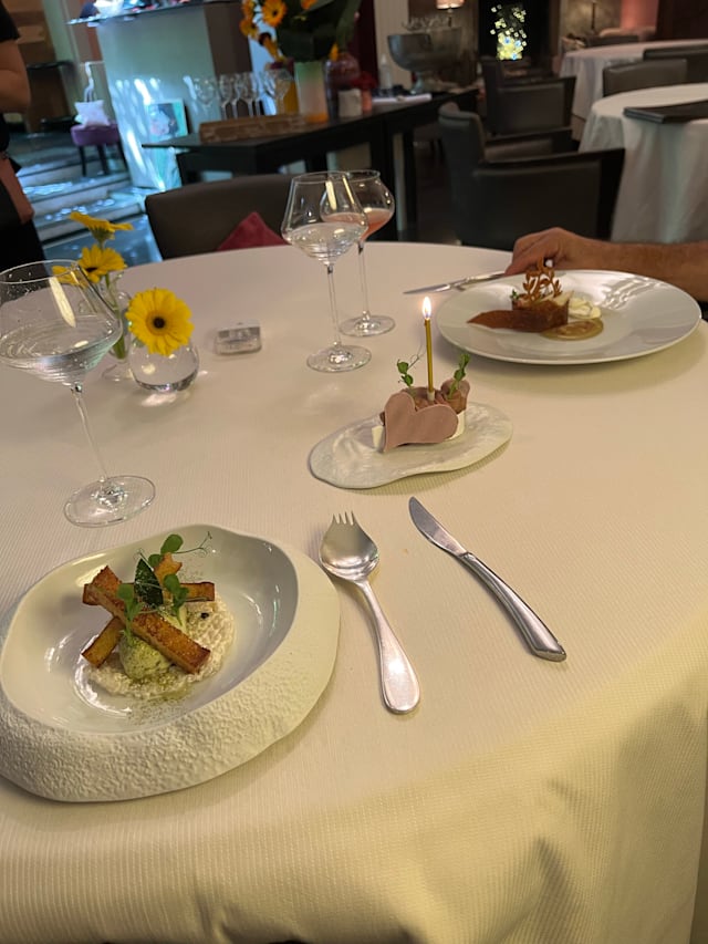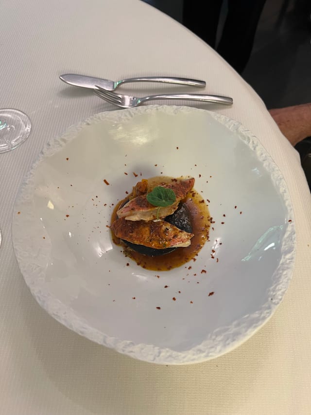9.5/10Stunning food and lovely restaurant with attractive indoor decor and a green and shady outdoor section. Each of my 6 courses was close to perfect. I opted for the surprise menu. The food was not overly showy or complex but demonstrated great mastery of the art of layering flavours. I made sure to try a little of all the flavours on each dish at once. Each ingredient sung out in it's own turn in a fabulous sequence of flavours. Favourite courses were aubergine roll with pimento and sheeps cheese and the sturgeon with fish roe, piccilo peppers and meat jus. I went during an extremely quiet lunch service on Saturday, service was professional, polite and engaging throughout. Price came to 100€ which , given I had 4 glasses of wine , represents great value.