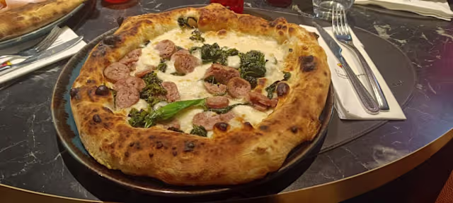 - Provola affumicata dei monti, salsiccia e friarielli alla napoletana, olio evo e basilico