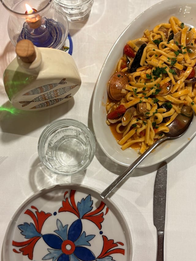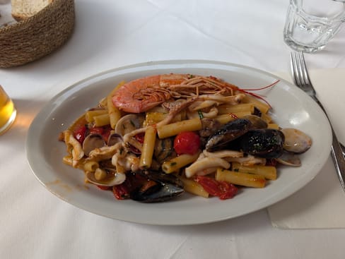 9.5/10Called in for lunch after getting off the ferry, on the way to the airport. It's a 10 minute walk. We both had ravioli - which was delicious. And we shared a decent bottle of €15 wine, too.