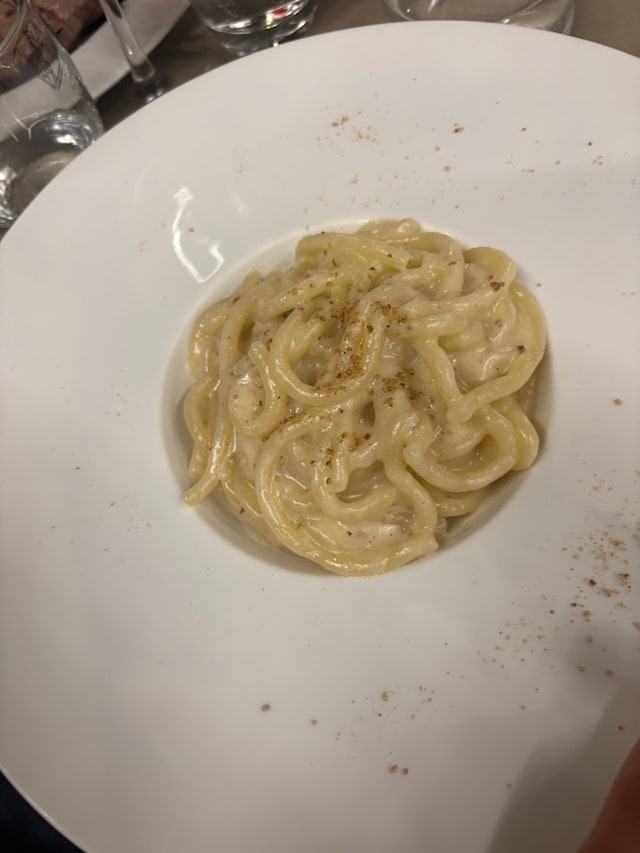 10/10We enjoyed a lunch inside the osteria. We started with tagliere di salumi e bruschette, and the cold cuts were excellent! The pici cacio e pepe and lasagna della tradizione were both very good as well. They were very kind as they offered a digestive after we paid. Definitely recommended!