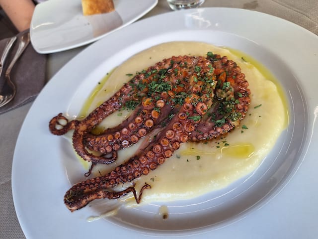 9.5/10It was a great experience as a whole. Our food was delicious and our waiter Abdul was the nicest Person, gave us great wine recommendation and was most proffesional. We had the Octopus as a starter which was on point. My main course was the seabass which was also delicious. Thank you for the great dinner.