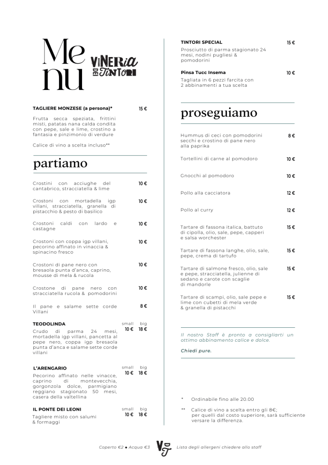 La Vineria dei Tintori è il locale a Monza che ti farà innamorare di vini pregiati, piatti deliziosi e un'atmosfera accogliente. Situato nel cuore della città, nei pressi dello storico Ponte dei Leoni, il locale è diventato un punto di riferimento per gli amanti del buon bere e del buon cibo a Monza...