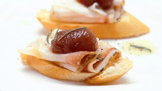 Crostoni con coppa IGP villani, pecorino affinato in vinaccia & spinacino fresco