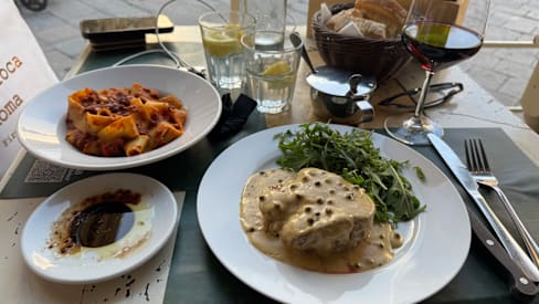 6/10We ate both lunch and dinner here on the same day because we were only in Florence for one day. We had pizza at lunch but saw a few pasta dishes we were interested in so we booked dinner reservations, too. The lunch went well and we were served by friendly servers but when we returned for dinner, our waiter appeared less than enthusiastic to be working and rather tired. He offered no additional information about anything on the menu and when I told him I was googling what “artichoke flan” was he simply left the table to go get started on our drinks. So I looked it up, but he did not tempt with any description that’s for sure. We also ordered a bottle of the only Sauvignon Blanc on the menu but by the time our pasta dishes came the wine had not yet arrived. We tried to wait to eat our dishes until wine could accompany it, however, we had to wave a server over to explain we had ordered wine. A manager (the only employee wearing a suit) explained they were out of that bottle and would we like another one. We declined since we had about two bites left of our pasta dishes and there were no other Sauvignon Blanc options. He apologized. Then our original server came over some time later to ask how everything was and collect our bowls. My daughter asked if we could please get the check and I explained we are trying to catch a train, and he asked us if we wanted dessert. We said no, and then he walked away. For the next ten minutes he continued to serve drinks and take orders at all of his other table but kept making eye contact with us but not acknowledging if he was going to get the check or not. I finally asked my daughter to get ready to go and we started standing up and collecting our things and that’s when the manager promptly appeared with our check. The really uncomfortable part about this was our server and the manager could be overheard sort of bickering when the manager found out we had not received our wine and then our server seemed insulted. At one point when they were arguing, I asked if everything was okay because our server looked so mad at us. It bexcame really awkward and I had not even complained