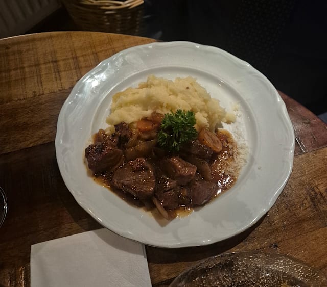 4/10It was very very chaotic, there was some event with loads of guest that had prepaid their food, my company that had booked a normal table had to push ourselves through at least 30 people that didn’t understand why we walked past in the queue. The service was not good, everyone was super stressed and the waitresses did not communicate, as we got the same questions many times “do you want something else?” “Do you want to order?” And they forgot the water to our table. There was a dog on the floor, beside everyone’s table, that wanted to go out and maybe go to the bathroom. The dog was not comfortable to be inside a restaurant. The guests around thought it was strange to have a dog there as well. The risotto was over cooked. But great prices.