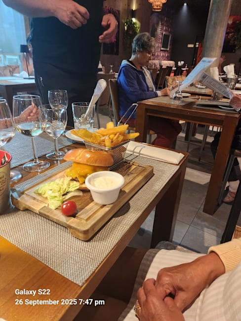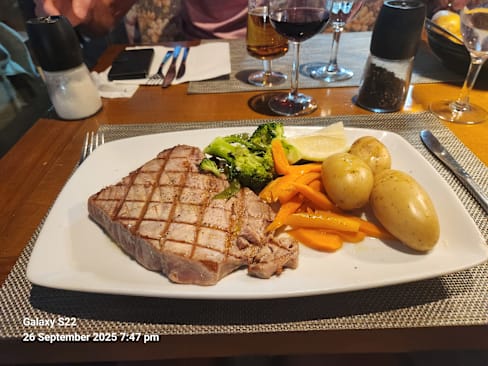 9.5/10Good quality food and flavour (Chicken ceasar salad, mushroom risotto, burger). Happy that offer an early dinner time with a bit of a view of the sunset. Will go back again.