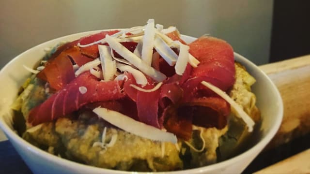 - Fonduta, Cavolo Verza, Salsiccia e crumble di Pane