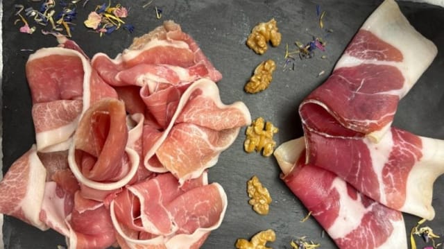A scelta tra prosciutto cotto artigianale o mortadella artigianale arrostita accompagnata da una bruschetta con crema al friariello napoletano